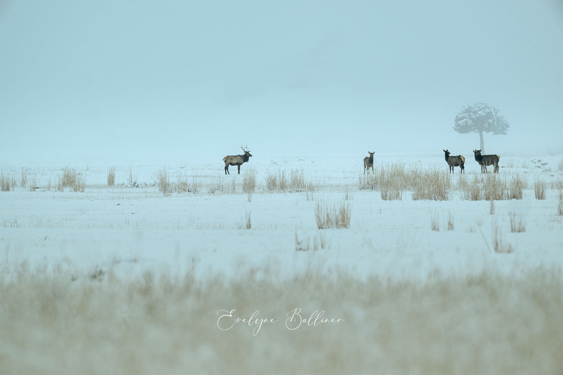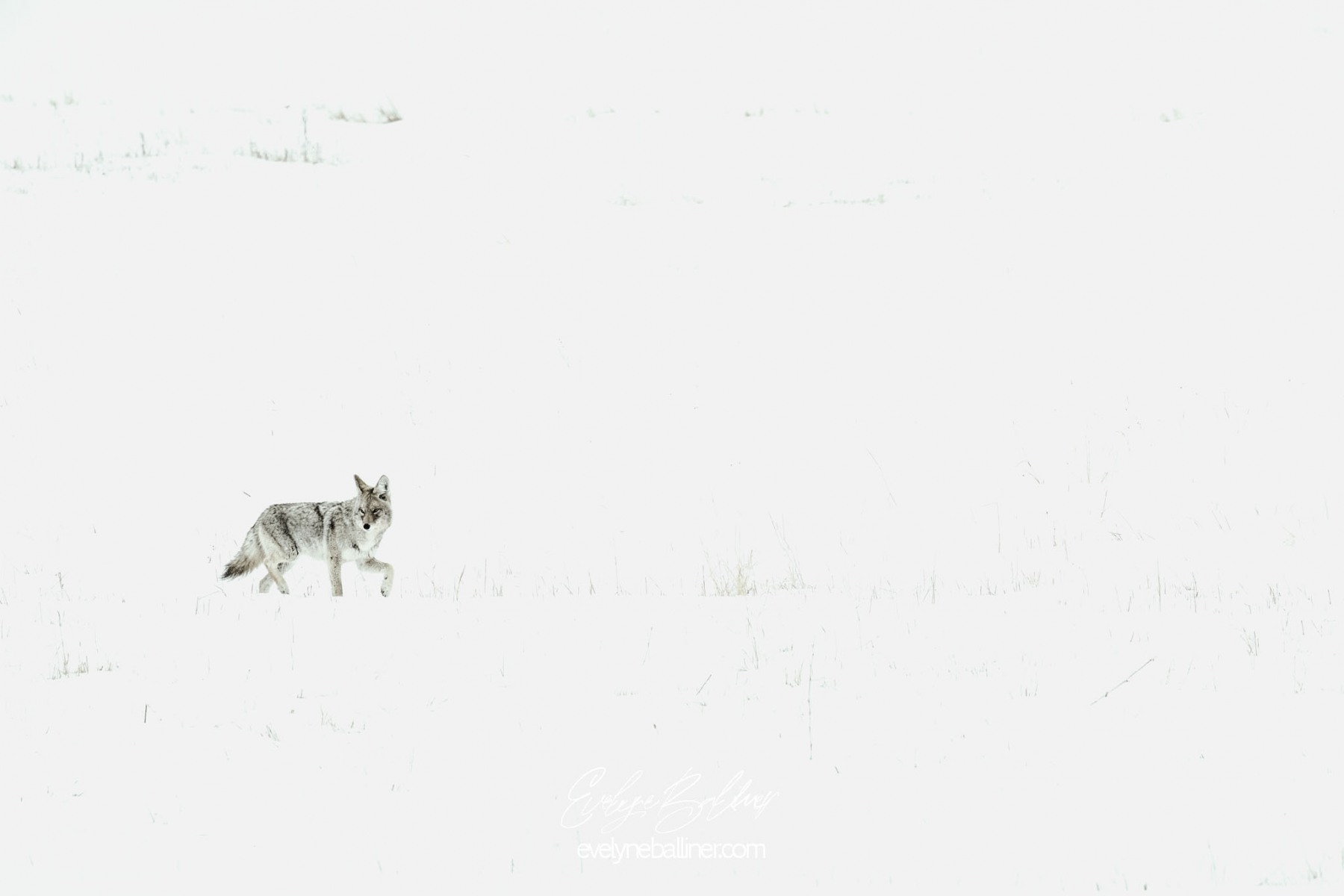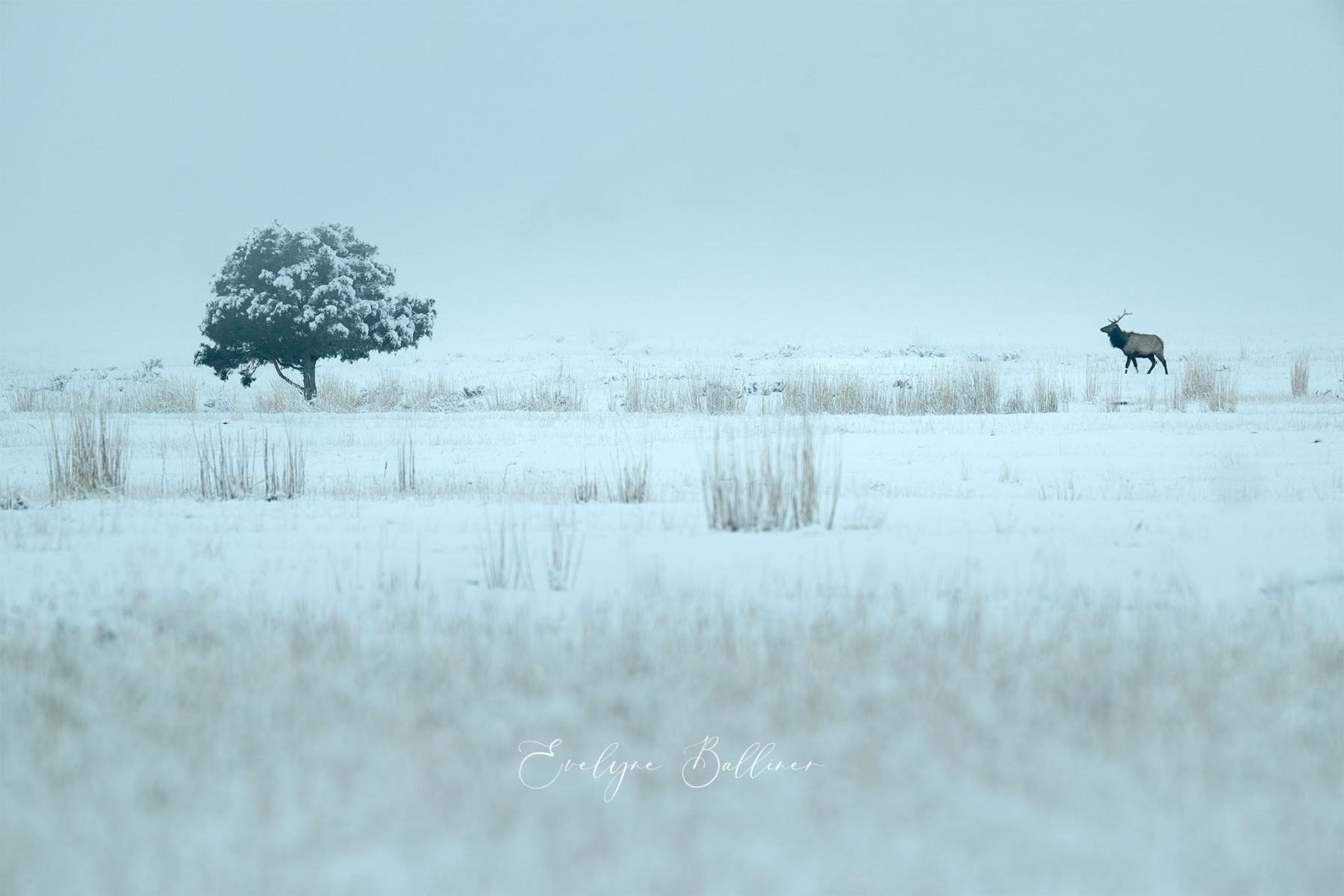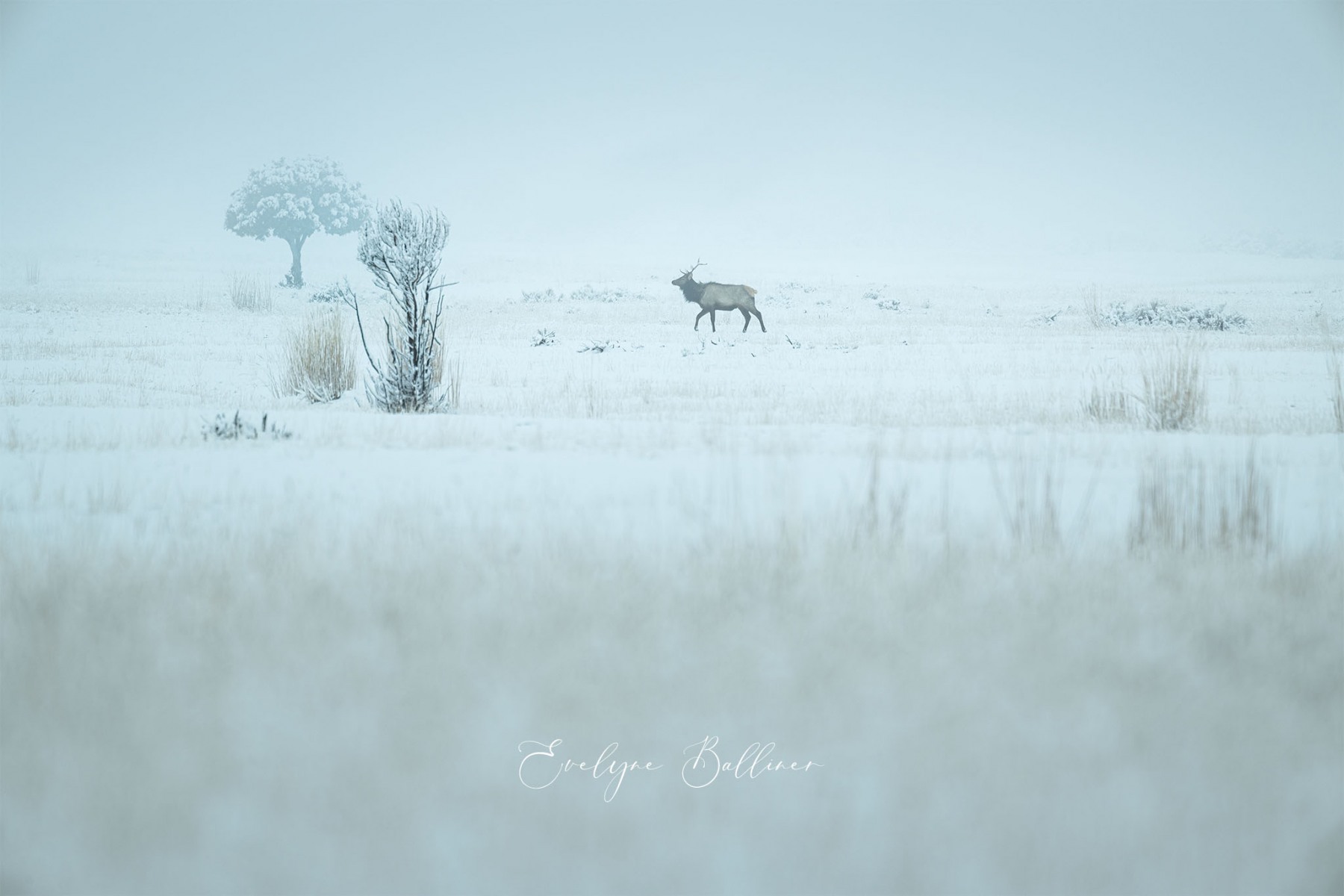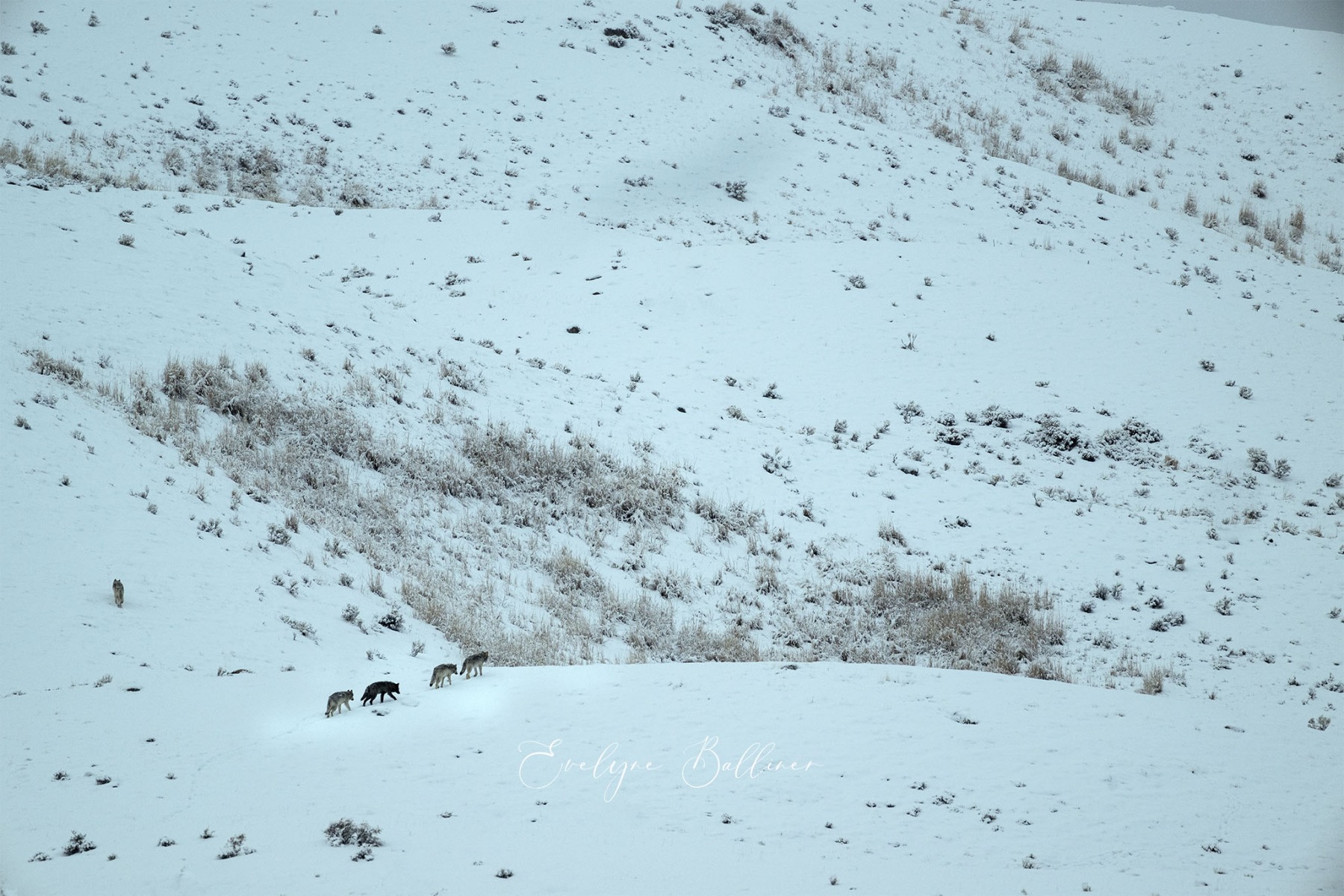 A la pointe du jour, dans le grand froid du matin, nous explorons le parc de Yellowstone. Durant l’hiver, de nombreuses routes sont fermées à cause de la neige. Cependant, la route qui traverse le parc d’ouest en est reste ouverte toute l’année. Elle suit la rivière Lamar au cœur de Lamar Valley. A cette saison, de nombreux herbivores (bisons, wapitis, antilopes pronghorn, entre autres) descendent dans la vallée, moins froide que les sommets du parc. Les prédateurs les suivent généralement. C’est la meilleure saison pour voir des loups le long de la rivière à la recherche d’une proie.